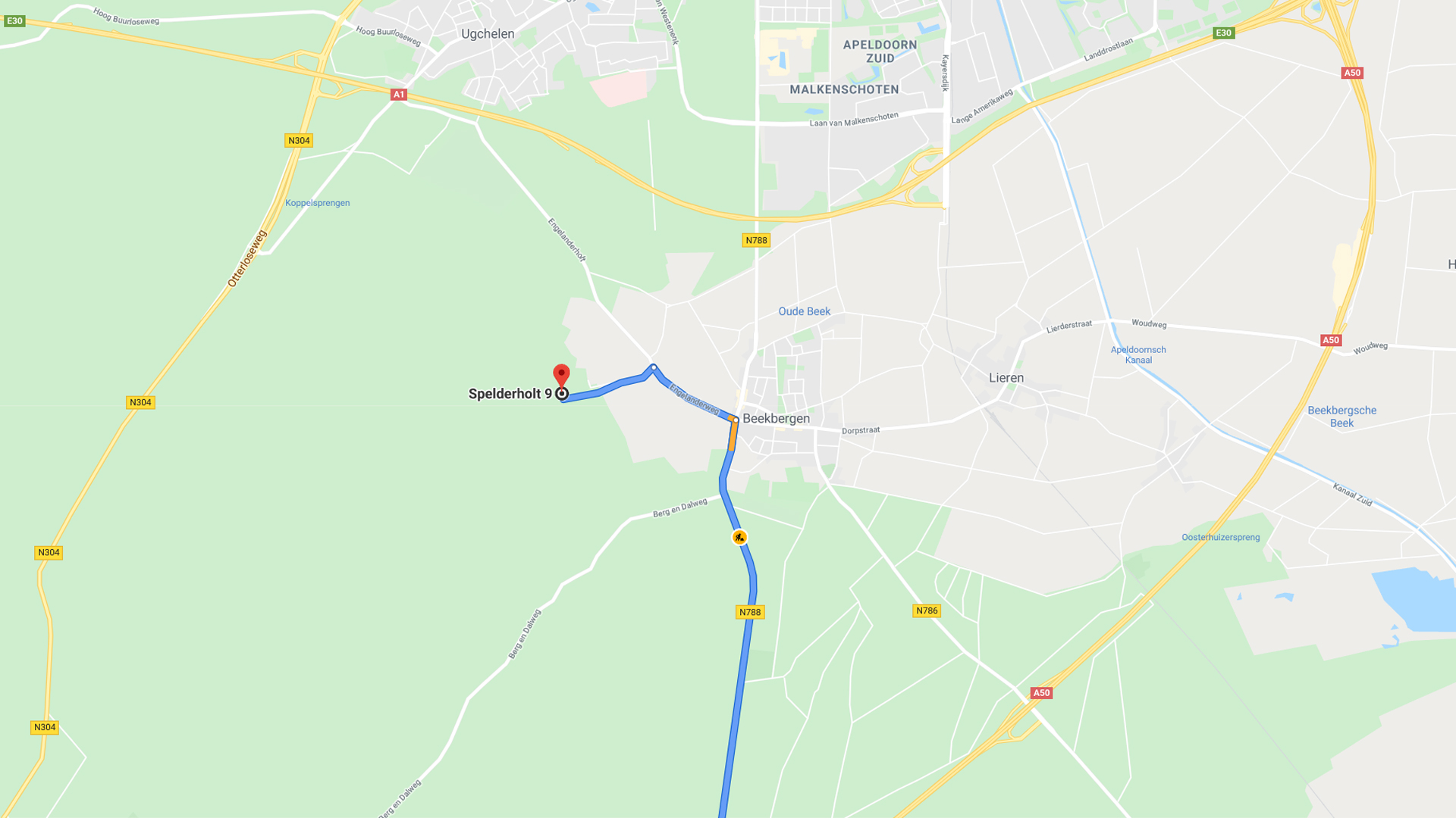 Met de auto vanaf de A1: Neem afslag 20, Apeldoorn-Zuid richting Beekbergen. Sla rechtsaf naar de Kayersdijk. Sla na 400 meter rechtsaf om op de Kayersdijk te blijven. Ga na 30 meter linksaf, de Hansengraaf op. Na 800 meter op de T-splitsing, rechtsaf slaan en uw weg vervolgen op de Tullekensmolenweg. Sla na 1,3 kilometer linksaf naar de Arnhemsweg/N788. Sla na 550 meter bij de verkeerslichten rechtsaf naar de Engelanderweg. Sla na 700 meter linksaf naar Spelderholt. Vervolg de weg. U bent gearriveerd.