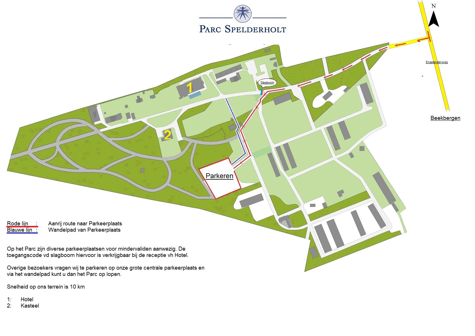 Parkeren op Parc Spelderholt: Zodra u richting het landgoed rijdt, treft u bij de ingang aan uw linkerhand de route naar de Parc parkeerplaats aan. Hier kunt u parkeren en via het wandelpad bent u in een paar minuten lopen bij het Hotel. Gelieve niet langs de oprijlaan te parkeren vanwege de veiligheid en aanrijroute van hulpverleningsdiensten.