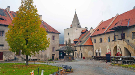 We hoeven niet alleen in de stad te blijven, maar we zouden ook een interessante treinreis kunnen maken door een indrukwekkend landschap naar Křivoklát, één van de mooiste burchten van Tsjechië. Deze burcht ligt in de bossen ten zuiden van Praag en heeft ondergrondse grotzalen, waar o.a. de kroonjuwelen van het koningshuis en enkele heilige relikwieën werden bewaard.