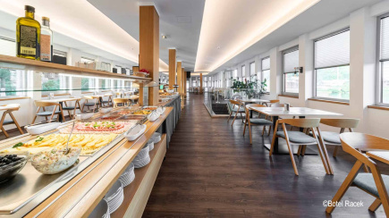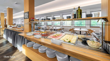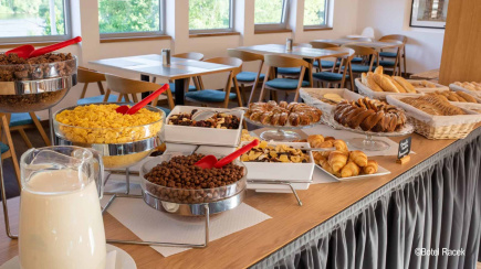 In het restaurant van ons hotel wordt iedere ochtend een uitgebreid ontbijt geserveerd.