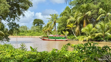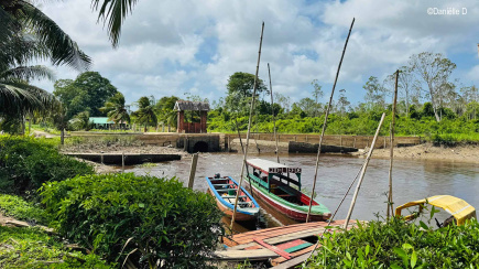 De meeste plantages in Suriname bevonden zich in het district Commewijne. We maken een boottocht naar de voormalige plantage Bakkie en het staatsbedrijf Alliance.
