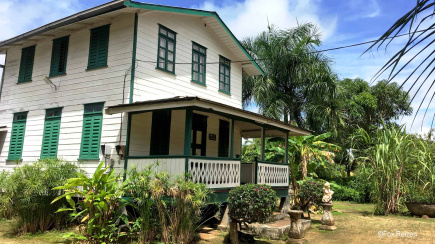 We maken ons op voor een verblijf op een voormalige plantage in het groene district Commewijne.