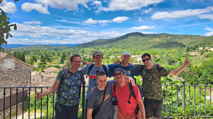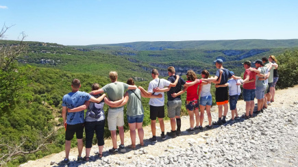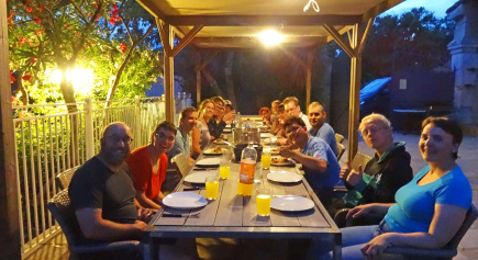 We reizen in 2 dagen naar Lagorce, Frankrijk met onze 9-persoonsminibusjes. Op de heen- en terugreis overnachten we in een motel in de buurt van Nancy. We stoppen regelmatig voor een pauze en chauffeurswissel.