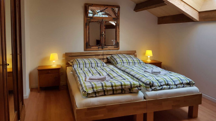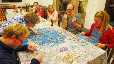 Het huis heeft 3 badkamers en 8 slaapkamers waarvan 2 kamers voor 3 personen. Alle bedden staan los van elkaar. We hebben de beschikking over 2 keukens, een kleine woonkamer en een grote woonkamer met kachelhaard en een flatscreen-tv en er is gratis wifi in het huis.