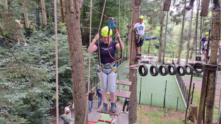 - Klimparcours tussen de appelbomen op touwbruggen en ziplines