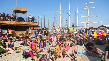 Het is 8 dagen feest en jij loopt de hele reis rond met een grote glimlach op je gezicht. We gaan zwerven over het eiland op door ons gehuurde fietsen om zoveel mogelijk voorstellingen te bekijken. Achter iedere boom, in ieder straatje en overal op het strand en in de duinen word je blij verrast door originele acts, muziek en/of kunst. Al je zintuigen worden aan het werk gezet, want je hoort en ziet fantastische (en bekende) livebands terwijl de kunstenaars en de artiesten jou verrassen met hun kleurrijke, humoristische optredens en kunstobjecten.