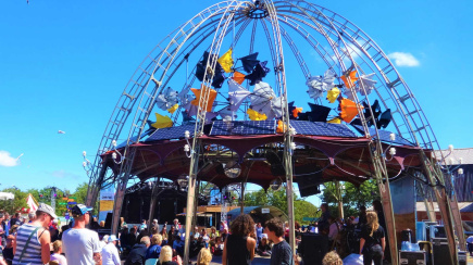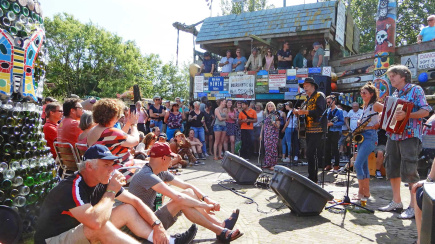Een ongelooflijk sfeervolle reis vol live-muziek, straattheater, kunst, humor en vrolijke mensen. Kortom, één groot Flowfeest!