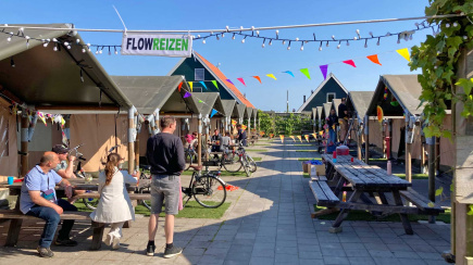 Wij overnachten op de gezelligste en gemoedelijkste camping van Nederland. Intussen hebben we onze eigen Flowstraat op de camping!