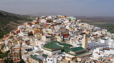 We vervolgen onze reis naar de oude Romeinse stad Volubilis, ooit een belangrijk bestuurlijk centrum in dit deel van Romeins Afrika. Gelegen op een plateau te midden van vruchtbare graanvelden, cactussen en olijfboomgaarden, wordt het landschap verfraaid door de majestueuze ooievaars die hun nesten bouwen op de eeuwenoude zuilen. Een fascinerend openluchtmuseum wacht op ons, met goed bewaarde mozaïekvloeren, tempels en imposante poorten die de glorieuze geschiedenis van deze plek weerspiegelen.