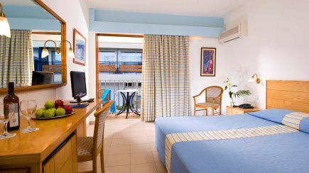 Bijna alle keurige 2-persoonskamers zijn voorzien van vrijstaande bedden. Daarnaast hebben alle kamers zee- of bergzicht, airco, eigen sanitair, gratis wifi en een kluisje (tegen betaling). Door een ongelukkige man/vrouwverhouding en het beperkt aantal eenpersoonskamers kan er een 3-persoonskamer bijzitten.