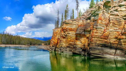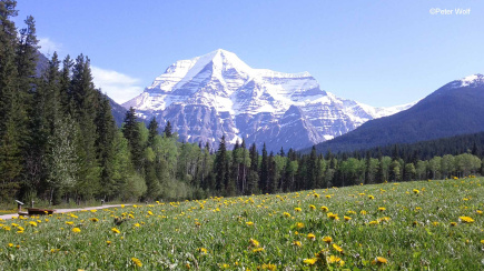 De reis gaat verder via Valemount naar Mount Robson Provincial Park om Mount Robson te bekijken. Mount Robson, op 3.954 meter (12.972 voet), heeft de voorname titel van de hoogste berg in de hele Canadese Rockies. Zijn immense aanwezigheid en perfecte piramidevorm maken het een opvallende verschijning, niet alleen vanwege zijn hoogte, maar ook vanwege zijn dramatische verticale reliëf. Dit betekent dat vanaf de basis, die op een relatief lage hoogte in de Fraser River-vallei ligt, de berg bijna 3.000 meter naar zijn top zweeft. Zijn enorme omvang en vaak in wolken gehulde top, die zijn eigen weersysteem creëert, hebben het de bijnaam "Cloud Cap Mountain" opgeleverd. Deze locatie is niet alleen een fantastische plek om de top te zien, maar ook een handige rustplaats, met het Café Mt Robson. Hier kun je een warm drankje, een maaltijd of een snack pakken terwijl je geniet van het ongelooflijke uitzicht, waardoor het de perfecte plek is om te pauzeren en de grootsheid van deze iconische berg in je op te nemen voordat je je reis voortzet.