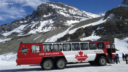 - De Icefields Parkway, de mooiste weg van British Columbia, met een stop bij de Columbia Icefield voor een tocht over de indrukwekkende Athabascagletsjer