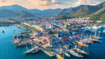 Marmaris is een bruisende badplaats aan de zuidwestkust van Turkije, prachtig gelegen aan een diepe baai die omringd wordt door groene bergen en pijnboombossen. Het staat bekend om zijn levendige boulevard langs de Middellandse Zee, waar luxe jachten, traditionele gulets en vissersbootjes naast elkaar liggen. Het oude centrum van Marmaris heeft smalle straatjes met witgekalkte huizen, kleurrijke markten en een sfeervol kasteel uit de Ottomaanse tijd dat nu dienstdoet als museum.