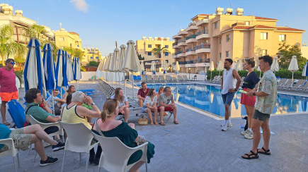 We vliegen vanuit Nederland naar Cyprus en worden met een transfer naar ons hotel gebracht. De tickets ontvang je op het vliegveld van onze begeleiders. De vlucht duurt ongeveer 4,5 uur. De reis van en naar het vliegveld in Nederland is niet inbegrepen. Hier moet je dus zelf voor zorgen.