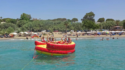 - Stranddagen met veel zonnen, zwemmen, watersporten als parasailen en bananenboot varen