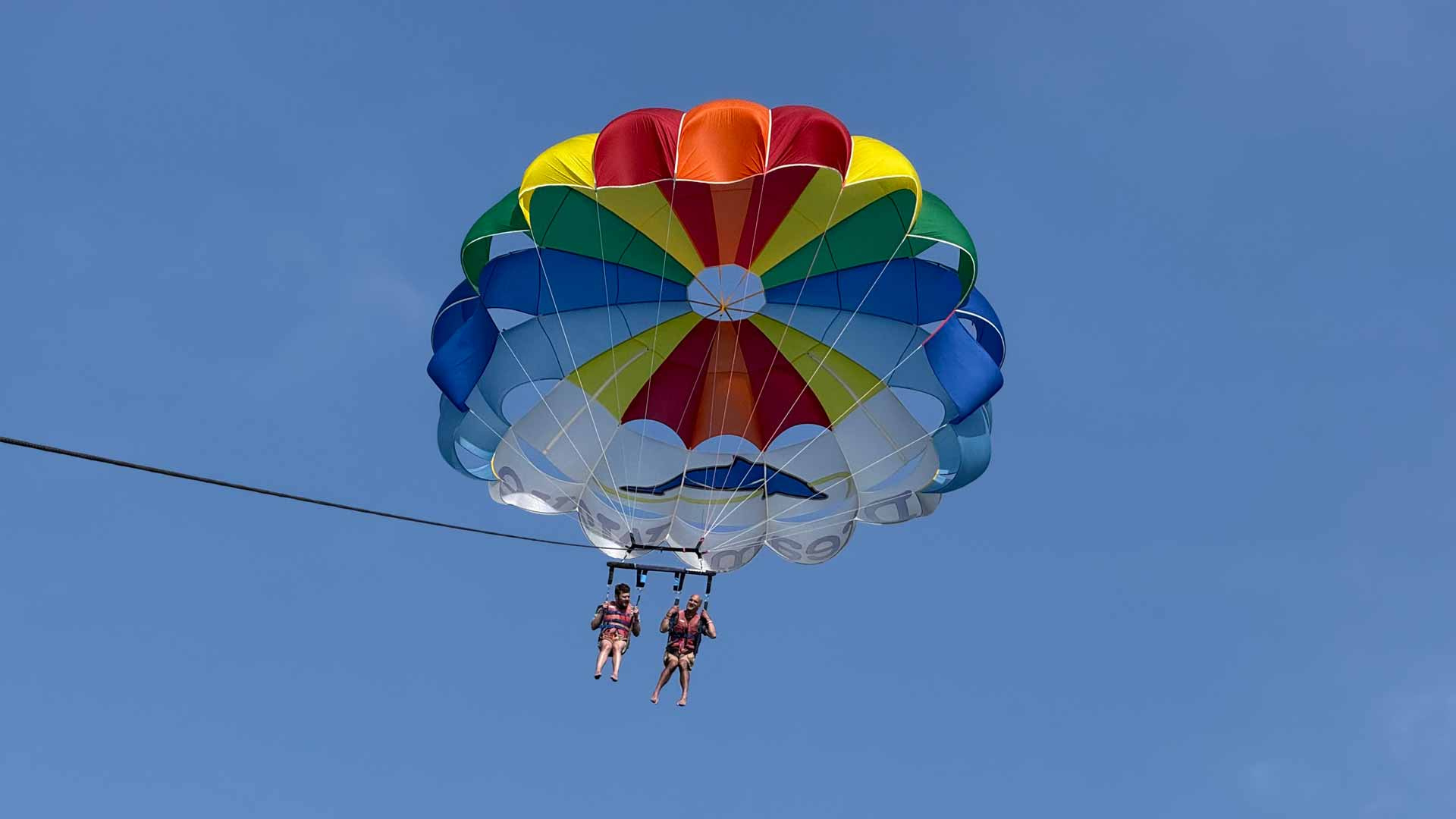 - Stranddagen met veel zonnen, zwemmen, watersporten als parasailen en bananenboot varen