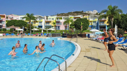 Het kleurrijke en sfeervolle 4-sterren appartementencomplex waar wij verblijven (TUI-score 8.5) ligt aan de rand van Albufeira, op 10 tot 15 minuten lopen van de stranden en het pittoreske centrum.  Het ligt ook direct achter de grote jachthaven, waar je uren kan kijken naar de vele luxe jachten.