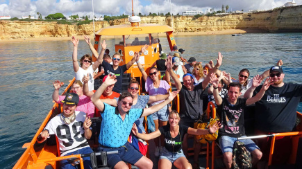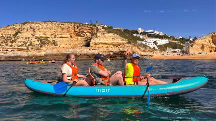 Hier is íe dan, onze schitterende en sfeervolle reis naar een van de mooiste strandlocaties van Europa: de kust van de Algarve in Portugal! Reis met ons mee naar de imposante klifrotsen en de prachtige zandstranden van Albufeira aan het heldere water van de Atlantische oceaan. Hier liggen de snorkelboten, de jetski’s en de bananenboten op jou te wachten. Maar de kajaktocht door de grotten van Benagil is ook heel bijzonder!